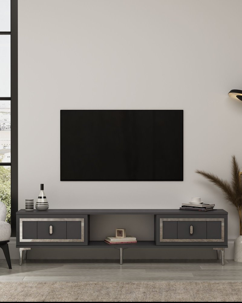 HANAH HOME TV polica Orion - Anthracite Silver