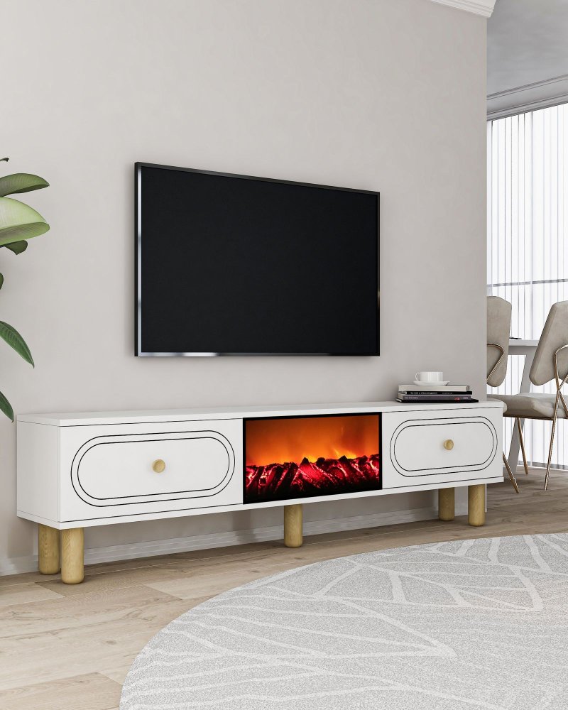 HANAH HOME TV polica Polen Bohem Fireplace - White