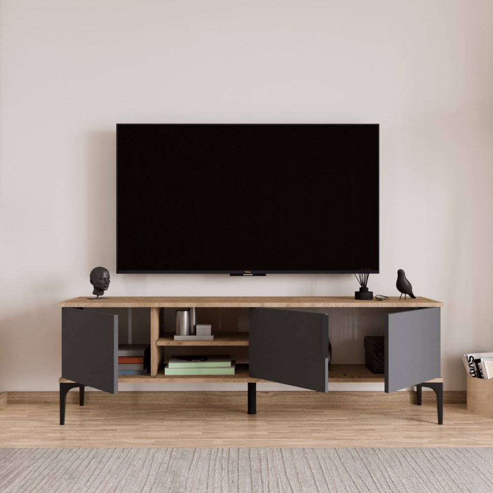 HANAH HOME TV polica Tarz Oak Anthracite