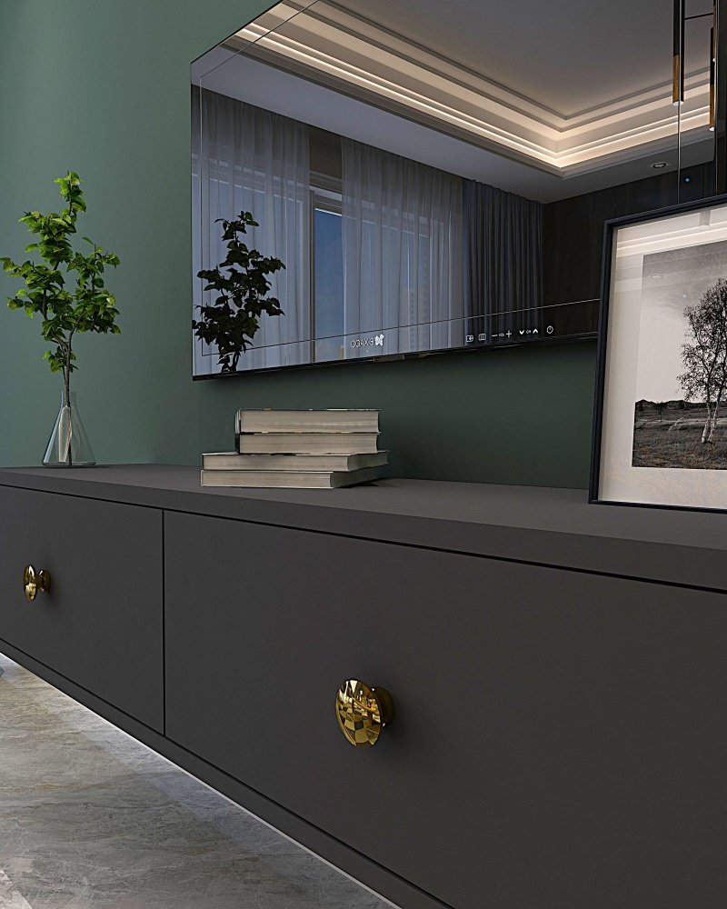 HANAH HOME TV polica Zuzu 120 Anthracite Gold