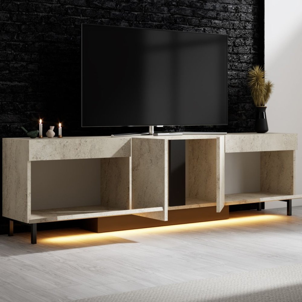 | Specifikacija | TV Police Paris Travertine 100% IVERICA OBLOŽENA MELAMINOM Debljina: 18 mm PVC ivica Metalne nogare (20 x 20 mm) Širina: 180 cm Visina: 50 cm Dubina: 32 cm Visina nogara: 10 cm LED sistem osvetljenja (12 V adapter za napajanje) RGB daljinski upravljač Nosivost: 45/50 kg Rastavljeno. Broj pakovanja: 1 35 x 192 x 12 cm / 32,6 kg (1 komad) |