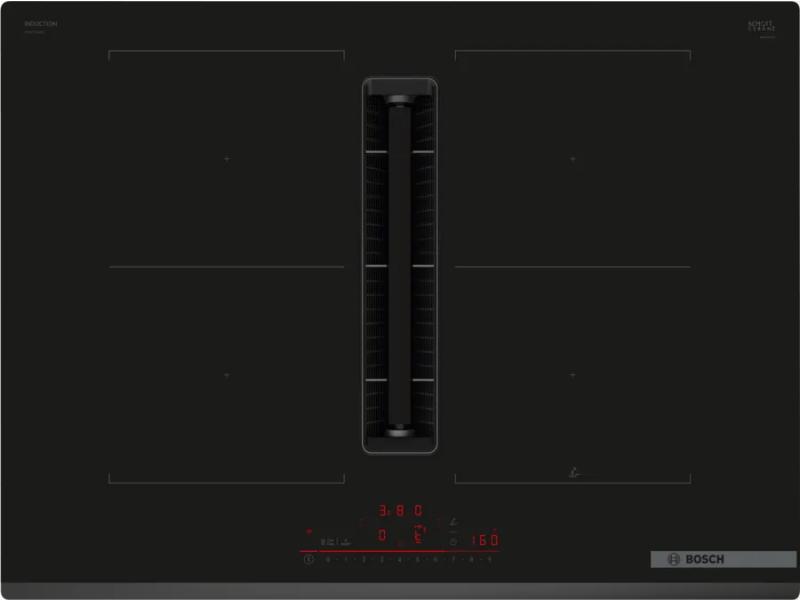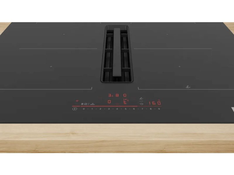 | Ostalo | DirectSelect dodirno upravljanje CombiZone zona (spajanje zona za veći sud) PowerBoost funkcija za sve zone PerfectFry Plus senzor kontrole temperature AutoOn funkcija – ventilator se automatski uključuje kad ploča radi Tajmer / isključenje po vremenu Indikator preostale toplote Sigurnosno isključenje Zaključavanje za decu Mogućnost rada u režimu ekstrakcije ili recirkulacije vazduha Filteri masti, indikator promene filtera |