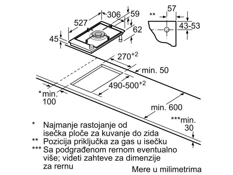 | Dimenzije | Dimenzije aparata: 57 x 306 x 527 mm Dimenzije niše: 45 x 270 x 490 mm |