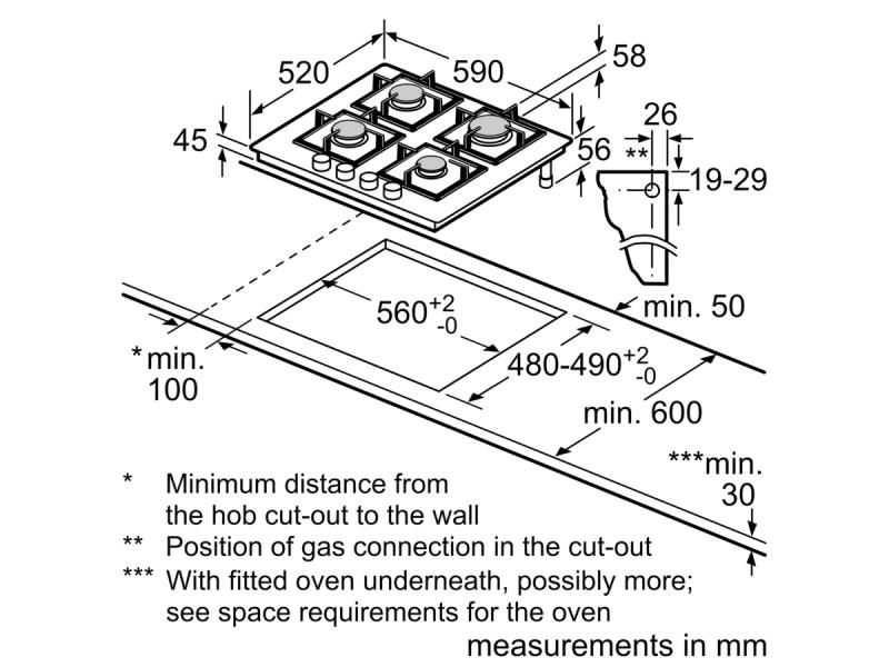 | Dimenzije | Dimenzije aparata: 54 x 590 x 520 mm Dimenzije niše: 45 x 560-560 x 480-490 mm |