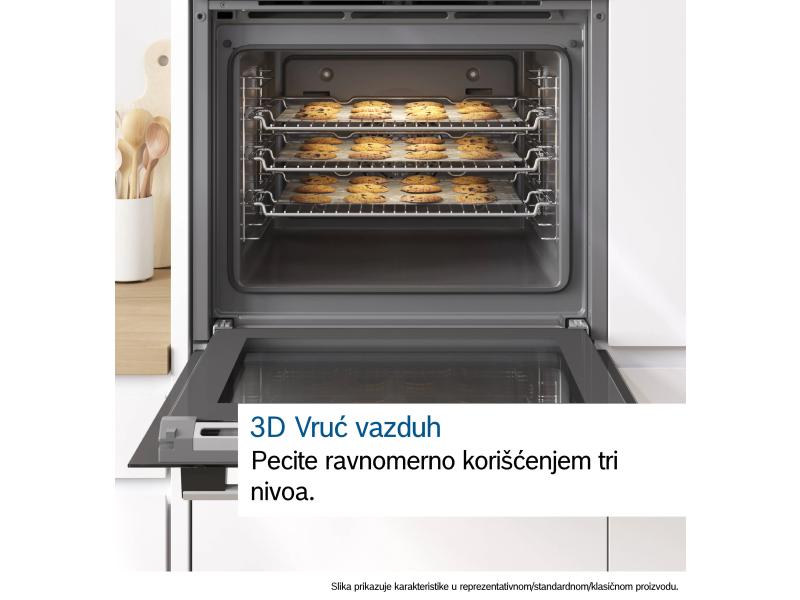 | Ostalo | Karakteristike Zapremina rerne: 66 l Temperaturno područje: 50-270°C Korisnički interfejs: Crveni LED displej sa komandnim dugmićima Broj režima grejanja i kombinovanja: 7 Ugrađen sistem čišćenja: EcoClean Direct Plus, Hidroliza Priključna snaga: 3300 W Potrošnja energije (konvencionalno): 0.94 kWh/ciklus Potrošnja energije (ventilatorsko): 0.69 kWh/ciklus Dužina priključnog kabla: 120 cm Pribor: Rešetka, Univerzalna posuda za pečenje, Pleh emajl Funkcije 3D vrući vazduh Podešavanja za pizzu Manje vremena potrebno za prethodno zagrevanje Child Lock Načini grejanja Vrući vazduh blago, Vrući vazduh, Konvencionalno zagrevanje, Postavke za pizzu, Donje zagrevanje, Gril na vrućem vazduhu, Promenljivi gril pune širine |