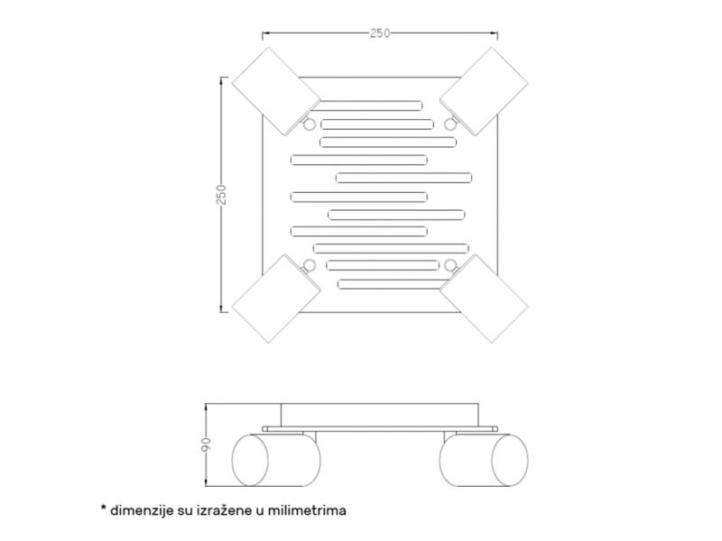 | Karakteristike | Model / tip TALIA 68 Nazivni napon 220–240V AC / 50/60Hz Tip grla GU10 Broj grla 4 Izvor svetlosti Sijalica (izmenjiva) Boja artikla Crna / Drvo Materijal Aluminijum / drvo / staklo Dimenzije 25 x 25 x 9 cm Način / tip montaže Nadgradna Stepen električne zaštite Klasa II IP zaštita IP20 |