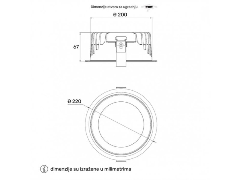 Dimenzije otvora za ugradnju: Ø 200 mm