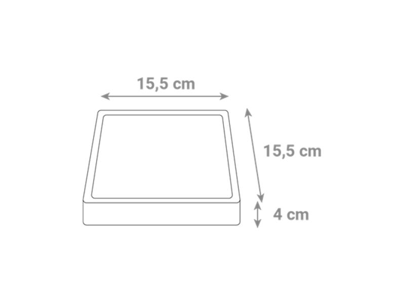 | Karakteristike | Snaga: 12 W Boja svetlosti: 6500 K IP stepen zaštite: IP44 Napon: AC 85 - 265 V / 50 - 60 Hz Flux: 100 lm / W Ugao svetlosti: 120° UGR: > 19 LED diode: EPISTAR RA: > 80 Tip drivera: izolovan Radni vek: 30000 radnih sati Sertifikati: CE, FCC, RoHS Dimenzije svetiljke: 155 x 155 x 40 mm Neto težina: 0,370 kg Bruto težina: 0,470 kg Dimenzije pakovanja: 175 x 165 x 50 mm |