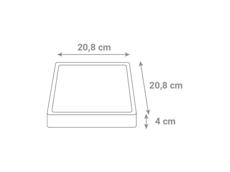 | Karakteristike |  Snaga: 18 W Boja svetlosti: 6500 K IP stepen zaštite: IP44 Napon: AC 85 - 265 V / 50 - 60 Hz Flux: 100 lm / W Ugao svetlosti: 120° UGR: > 19 LED diode: EPISTAR RA: > 80 Tip drivera: izolovan Radni vek: 30000 radnih sati Sertifikati: CE, FCC, RoHS Dimenzije svetiljke: 208 x 208 x 40 mm Neto težina: 0,630 kg Bruto težina: 0,745 kg Dimenzije pakovanja: 230 x 215 x 50 mm  |