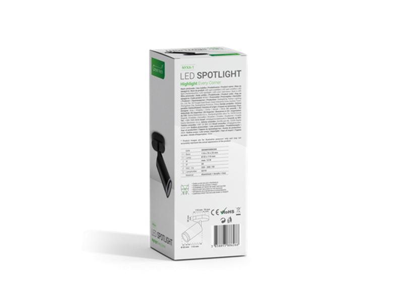 | Karakteristike | Tip grla: GU10 x 1 (max 12 W) Napon: VAC 220 - 240 / 50 Hz IP stepen zaštite: IP20 Materijal: Aluminijum + metal + akril Dimenzije artikla: Ø 55 x 110 mm Dimenzije nosača svetiljke: 110 x 70 x 25 mm Dimenzije pakovanja: 75 x 75 x 185 mm Neto težina: 0,226 kg Bruto težina: 0,288 kg Osvetljenje u stambenim i poslovnim prostorima, hodnicima i predsobljima, dekorativni element... Nadgradna montaža, prilagodljivi držač Sijalica ne dolazi u pakovanju Sertifikati: CE, RoHS |