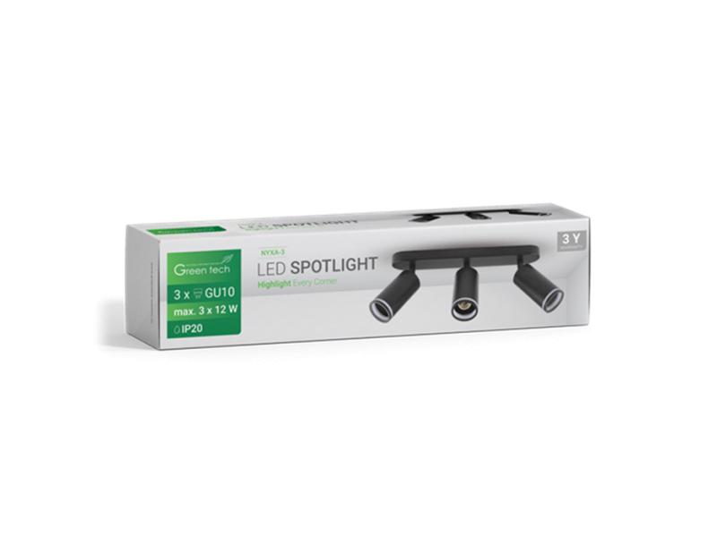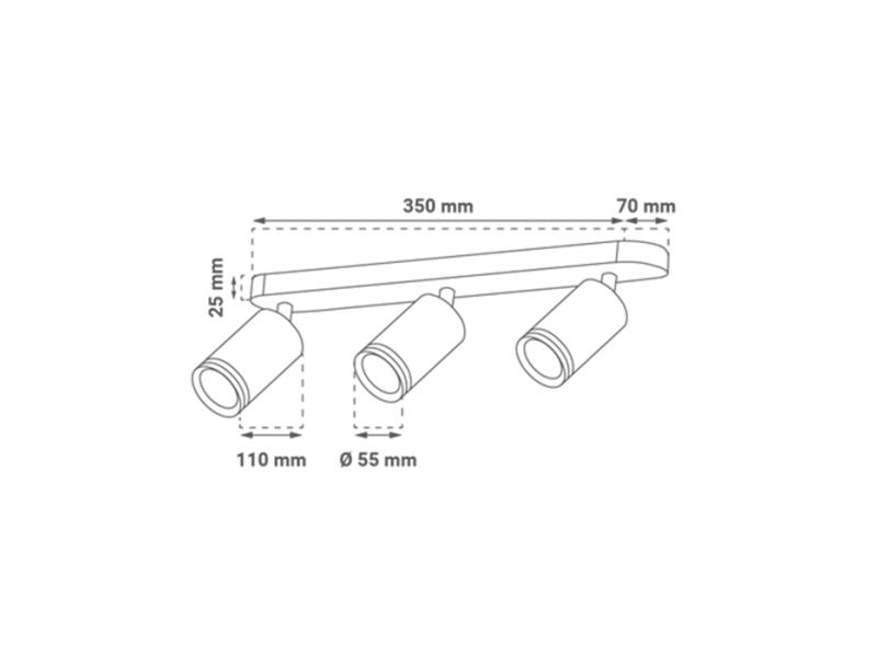 | Karakteristike | Tip grla: GU10 x 3 (maksimalno 3 x 12 W) Napon: VAC 220 - 240 / 50 Hz IP stepen zaštite: IP20 Materijal: Aluminijum + metal + akril Dimenzije artikla: Ø 55 x 110 mm Dimenzije nosača svetiljke: 350 x 70 x 25 mm Dimenzije pakovanja: 100 x 75 x 450 mm Neto težina: 0,693 kg Bruto težina: 0,805 kg Osvetljenje u stambenim i poslovnim prostorima, hodnicima i predsobljima, dekorativni element... Nadgradna montaža, prilagodljivi držač Sijalica ne dolazi u pakovanju Sertifikati: CE, RoHS |