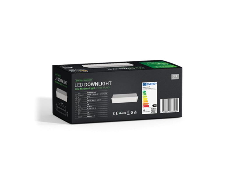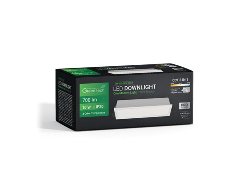 | Karakteristike | Snaga: 10 W Boja svetlosti: 3CCT - 3000 K - 4000 K - 6500 K Odabir boje svetlosti pomoću ugrađenog prekidača LED diode: SMD 3030 Svetlosna efikasnost: 70 lm / W Flux: 700 lm Napon: AC 85 - 265 V / 50 - 60 Hz CRI: ≥ 80 PF: ≥ 0,5 SCDM: ≤ 7 Ugao svetlosti: 100° IP stepen zaštite: IP20 Materijal: Aluminijum + PS Radni vek: 30 000 radnih sati Neto težina: 0,075 kg Bruto težina: 0,095 kg Dimenzije artikla: 144 x 41 x 32 mm Dimenzije dela za ugradnju: 37 x 139 mm Dimenzije pakovanja: 70 x 60 x 175 mm Sertifikati: CE, RoHS |