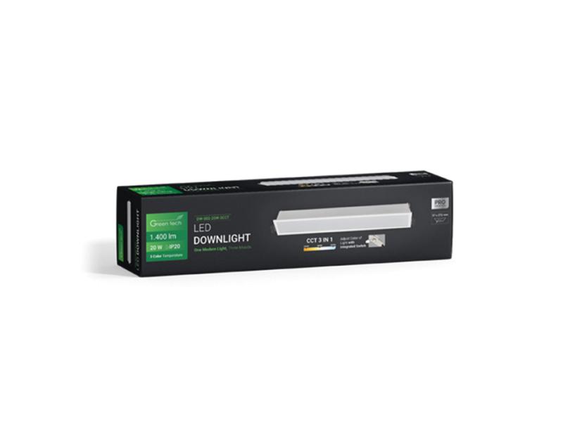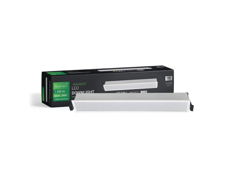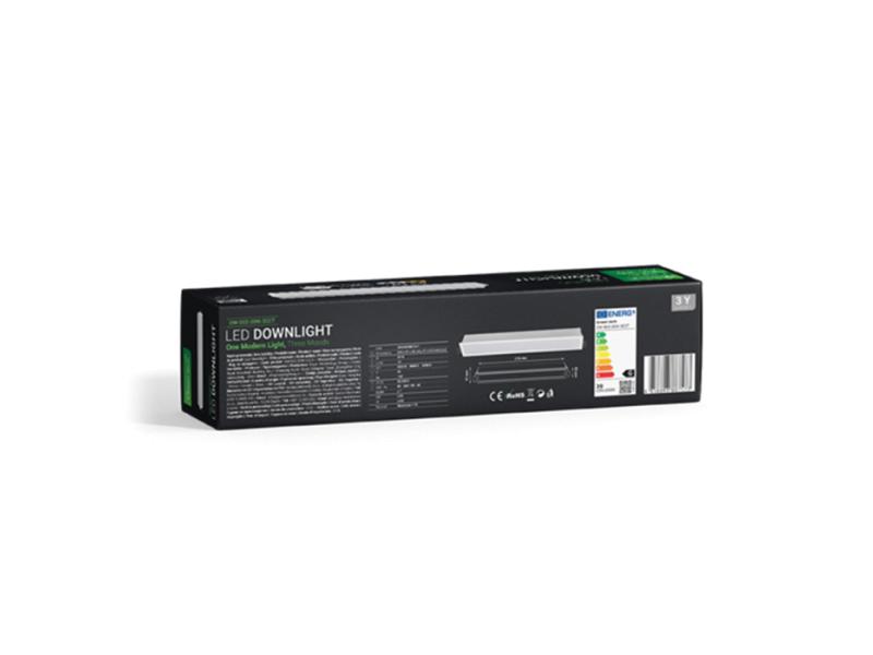 | Karakteristike | Snaga: 20 W Boja svetlosti: 3CCT - 3000 K - 4000 K - 6500 K Odabir boje svetlosti pomoću ugrađenog prekidača LED diode: SMD 3030 Svetlosna efikasnost: 70 lm / W Flux: 1400 lm Napon: AC 85 - 265 V / 50 - 60 Hz CRI: ≥ 80 PF: ≥ 0,5 SCDM: ≤ 7 Ugao svetlosti: 100° IP stepen zaštite: IP20 Materijal: Aluminijum + PS Radni vek: 30 000 radnih sati Neto težina: 0,270 kg Bruto težina: 0,330 kg Dimenzije artikla: 276 x 41 x 32 mm Dimenzije dela za ugradnju: 37 x 272 mm Dimenzije pakovanja: 70 x 55 x 300 mm Sertifikati: CE, RoHS |