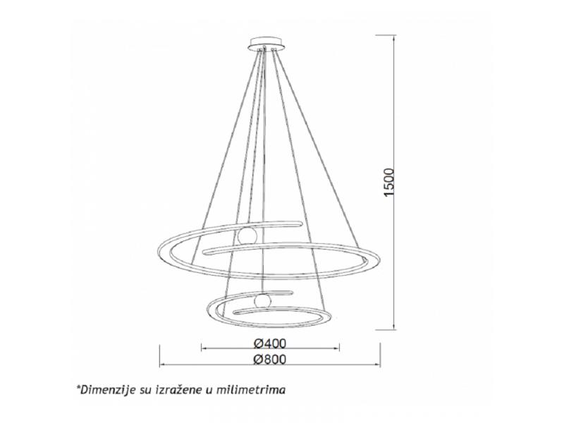 | Karakteristike | Nazivni Napon 220-240V AC / 50/60Hz Nazivna Snaga 105 W Temperatura Boje Svetlosti 3000 K Svetlosni Fluks 6300 lm Izvor Svetlosti LED Dimabilnost Ne Materijal Aluminijum Dimenzije Ø800/ Ø400 mm; h - 1500 mm Način / Tip Montaže nadgradna Indeks Reprodukcije Boje (CRI) 80(Ra) Temperatura Okruženja (ºC) -10 °C do +45 °C Prosečan Radni Vek 30 000 h na 25° C Energetska Efikasnost A+ Stepen Električne Zaštite Klasa I IP Zaštita IP 20 Potrošnja Elek. Energije: 105 kWh / 1000h |