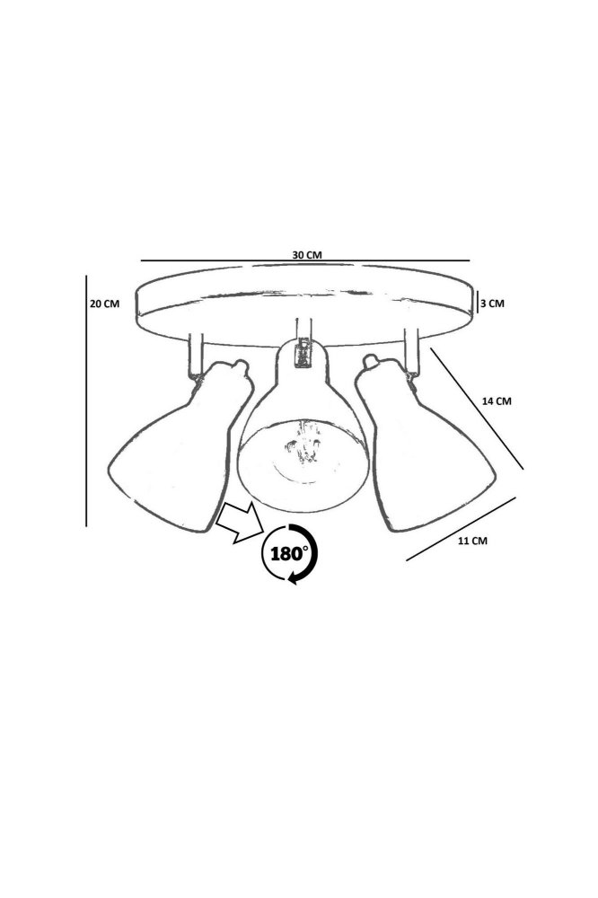 | Karakteristike | Materijal svetiljke: Metal Materijal abažura: Metal Dimenzije: Ukupna visina: 20 cm Prečnik abažura: 11 cm Visina abažura: 17 cm Prečnik baze: 30 cm Visina baze: 3 cm Broj izvora svetlosti: 3 Tip sijaličnog grla: E27 Specifikacije osvetljenja: E27 3x max 40W Radni napon: 220-240 V IP zaštita: IP20 Napomena: Sijalice nisu uključene u pakovanje |
