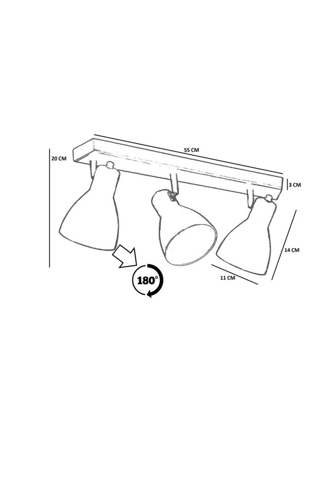 | Karakteristike | Materijal svetiljke: Metal Materijal abažura: Metal Dimenzije: Ukupna visina: 20 cm Prečnik abažura: 11 cm Visina abažura: 17 cm Dimenzije baze: 55 x 6 cm Visina baze: 3 cm Broj izvora svetlosti: 3 Tip sijaličnog grla: E27 Specifikacije osvetljenja: E27 3x max 40W Radni napon: 220-240 V IP zaštita: IP20 Napomena: Sijalice nisu uključene u pakovanje |