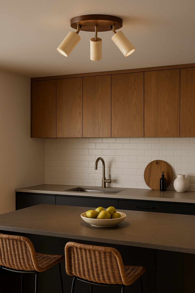 | Karakteristike | Materijal kućišta: Drvo Materijal abažura: Travertin Dimenzije: Ukupna visina: 21 cm Prečnik abažura: 6.5 cm Visina abažura: 18 cm Prečnik baze: 30 cm Visina baze: 3 cm Broj izvora svetlosti: 3 Tip sijaličnog grla: GU10 Specifikacije osvetljenja: GU10 3x max 10W Radni napon: 220-240 V IP zaštita: IP20 Napomena: Sijalice nisu uključene u pakovanje |