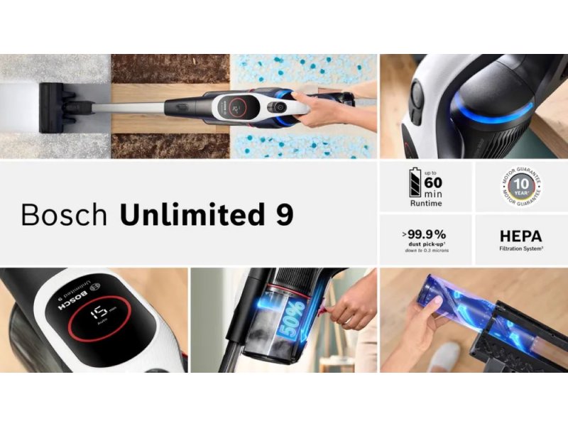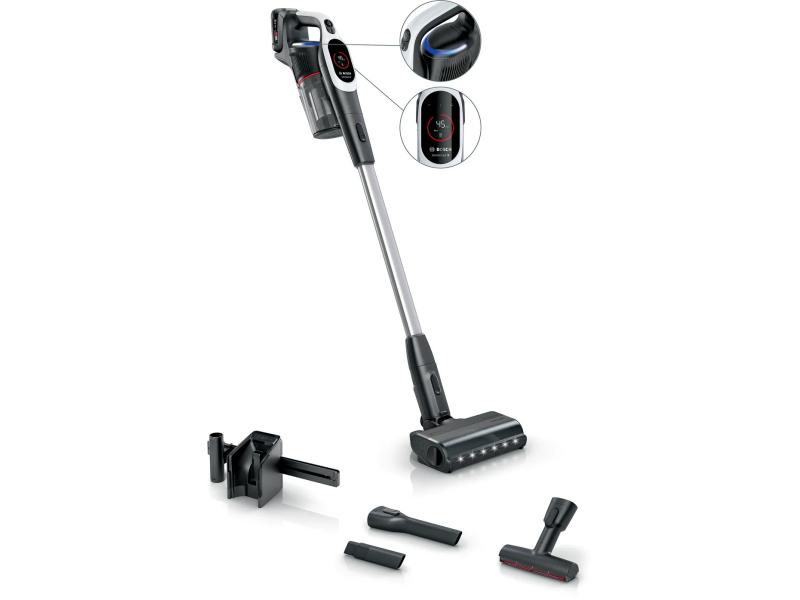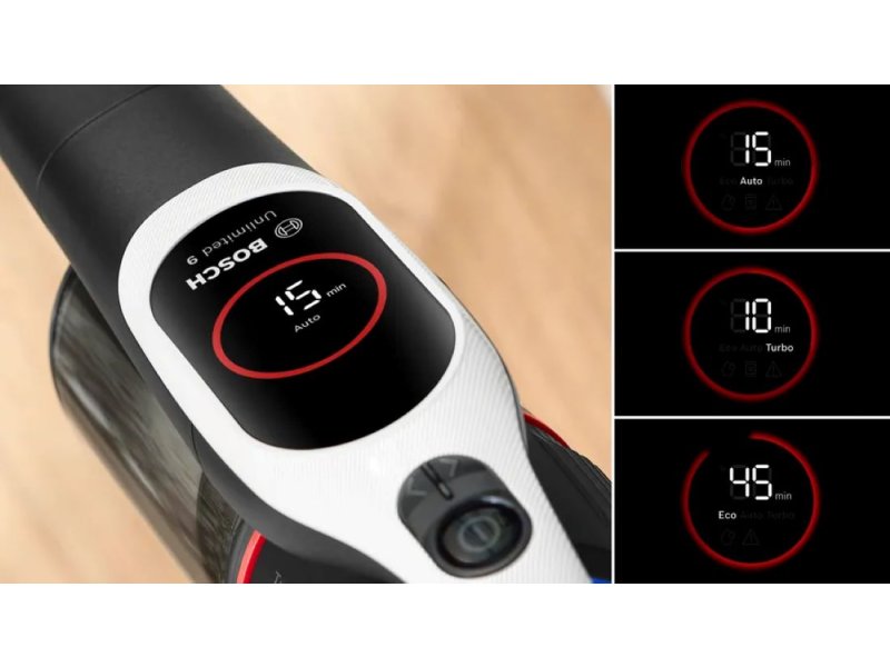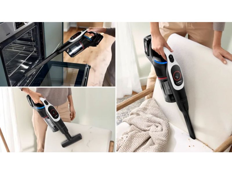 Dotatne funkcije | Tri režima rada Eco Auto i Turbo HEPA filtracija efikasnost preko 99,99% Senzor za detekciju prašine MicroClean Compress Slider sistem za sabijanje prašine u posudi RotationClean sistem za čišćenje filtera LED ekran sa prikazom režima i stanja baterije Zamenjiva baterija kompatibilna sa Bosch Power For All sistemom Mogućnost pretvaranja u ručni usisivač Različiti nastavci za podove i nameštaj |