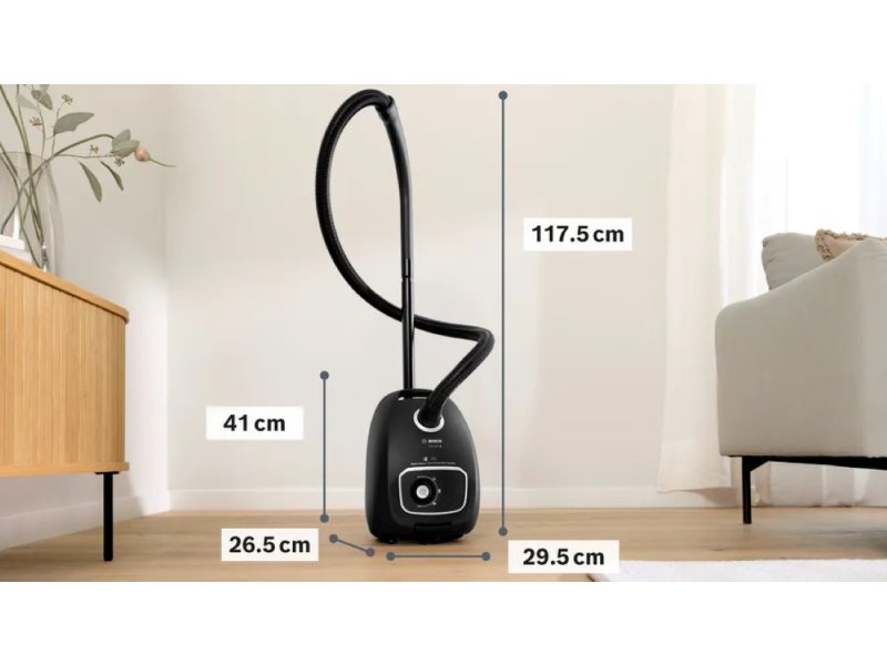 Ostalo | Zapremina kese 4 L, dužina kabla 8 m, radijus rada 11 m, nivo buke 75 dB, dimenzije 410 × 295 × 265 mm, težina 4.5 kg |