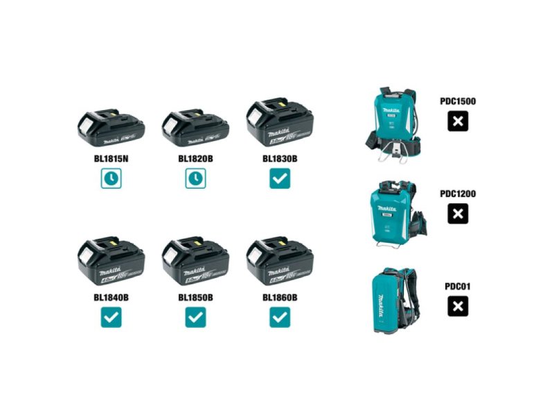 | Snaga | Napon akumulatora 18 V LXT Kapacitet akumulatora 1,5 / 2,0 / 3,0 / 4,0 / 5,0 / 6,0 Ah Tip akumulatora Li-ion |