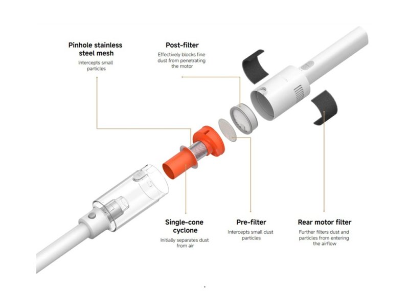 | Dotatne funkcije | 2 režima čišćenja 5 nivoa filtracije, Smanjenje čestica veličine 0.3μm do 99.98% Podržane tehnologije - Ciklon tehnologija |
