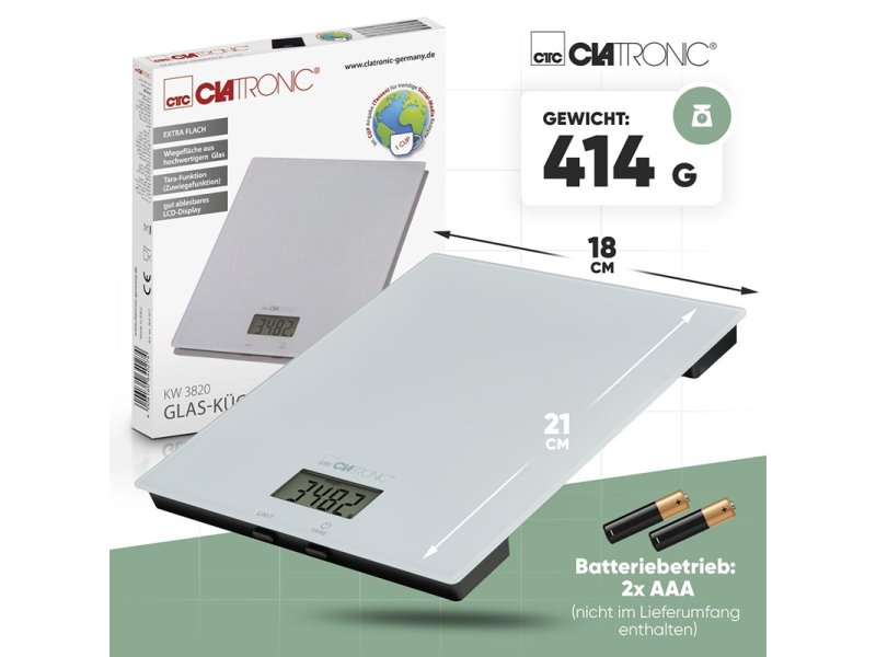 | Ostalo | Vaga je opremljena lako čitljivim LCD ekranom koji omogućava brzo i jednostavno očitavanje rezultata. Funkcija tare omogućava merenje sastojaka bez težine posude, dok automatsko isključivanje štedi energiju kada se vaga ne koristi. Prekidač za uključivanje/isključivanje dodatno doprinosi jednostavnosti upotrebe. |