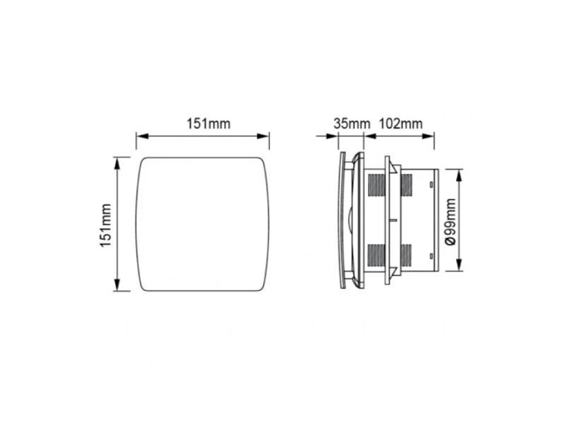 Dimenzije 151x151 mm, otvor za ugradnju (P)99 mm