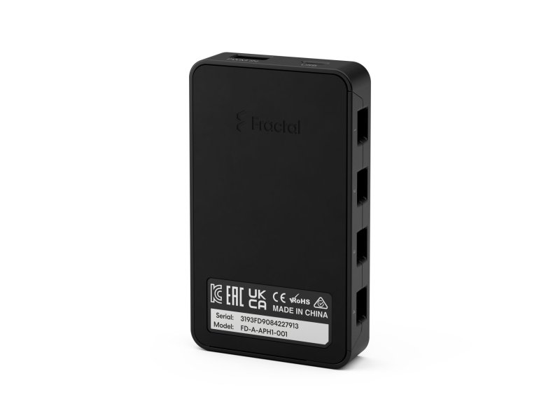 | Specifikacija | Ulazna snaga: SATA (12 V + 5 V) Maksimalna izlazna struja: 12 V DC – 2 A, 5 V DC – 4,5 A Ulazni konektori: 4-pinski PWM konektor, Micro-USB Izlazni konektor: Fractal Connect Izlazni kanali: 4 Podrška za izlaze: Do 16 ARGB Gen 2 uređaja (četiri po kanalu) sa maksimalno 400 LED dioda kombinovanih na svim kanalima Sistemski zahtevi: Računar sa dostupnim internim USB 2.0 konektorom, veb pregledač baziran na Chromium-u, SATA kabl za napajanje iz napajanja |