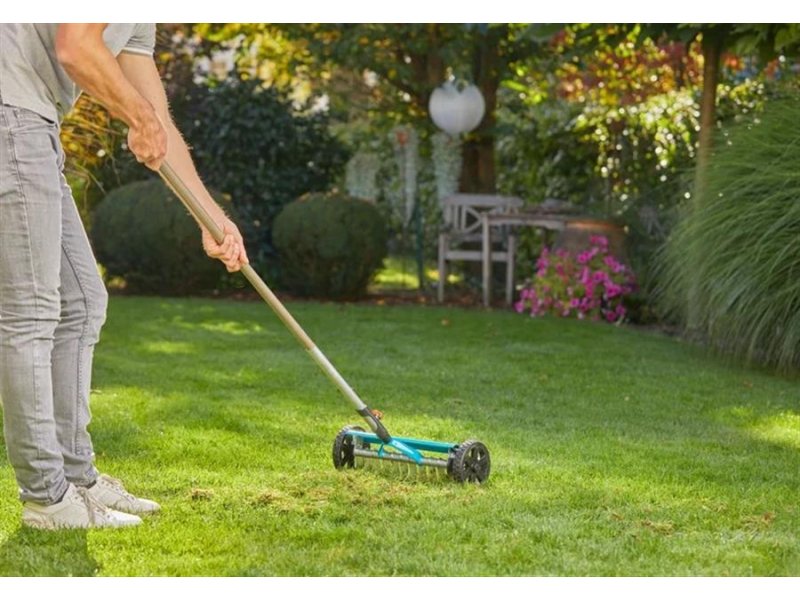 Gardena prozračivač za uklananje mahovine i korova i poboljšanje prozračnosti, vodoprivlačnost i apsorpcije hranljivih materija travnjaka. Gardena combisystem omogućava fleksibilnu upotrebu, zahvaljujući izmenjivim dodacima. Kompatibilan sa svim drškama Gardena combisystema i može se montirati i osigurati sa drškom. Preporučuje se drška dužine 180 cm, izbor drške zavisi od radnih uslova i visine korisnika. Sigurna veza između sekača i drške osigurava udoban rad. Posebni zupci sa glatkim leđima napravljeni od visokokvalitetnog nerđajućeg čelika prodiru u travnjak milimetrima i uklanjaju neželjenu i mrtvu travu sa travnjaka Čvrsti točkovi olakšavaju održavanje travnjaka. Napravljen od visokokvalitetnog čelika sa duroplast premazom koji ima antikorozivna svojstva.