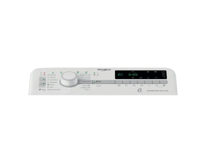 | Ostalo | Brend: Whirlpool Način punjenja: Odozgo Inverter motor: Da Direct Drive Motor: Ne Wi-Fi: Ne Odloženi start/kraj: Da Brzi program: do 30 min Funkcije i karakteristike: Podesive nožice Točkovi Dužina kabla za napajanje: 150 cm Zasebna kontrola temperature: Kontinuirano Opcije brzine centrifugiranja: Promenljiva Programi: Pamuk 40° Pamuk 60° Mešovito 40° Ispiranje + centrifugiranje Eco 40-60 20°C Brzi 30 minuta Vuna Sinetika Higijenski Potrošnja vode:45 l po ciklusu Potrošnja električne energije:52 kWh kroz 100 ciklusa Priključna snaga:2100 W Nivo buke:78 dB Masa (Neto):56 kg Boja: Bela Automatsko doziranje deterdženta: Ne Smer otvaranja vrata: Na gore |