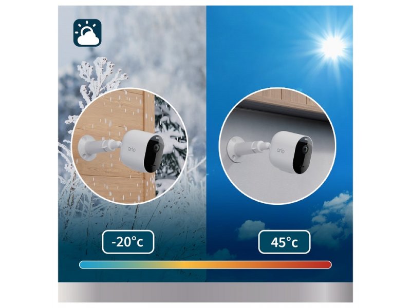 | Karakteristike | Mesto upotrebe: Spoljna Noćno osvetljenje: Da Mikrofon: Da Tip objektiva: Fiksni Polje vidljivosti: 160° horizontalno Rezolucija: 2688 x 1520 Redukcija šuma: 2D Uvećanje (digitalni zoom): 12x Audio I/O: Mikrofon/zvučnik Stepen otpornosti kamere: IP65 Funkcije: HDR De-warping 24 fps Senzor pokreta Talkback funkcija Review past event Stream Smanjenje šuma i poništavanje eha Ugrađeni reflektor i sirena Live View Cloud storage Vreme punjenja baterije: 3.5 h Kapacitet baterije: 4800 mAh Arlo Secure aplikacija za pametne telefone Kompatibilne sa: SmartThings Amazon Alexa Google pomoćnikom IFTTT Konekcija: Wi-Fi Operativna temperatura: -20°C do +45°C Dimenzije: 8.9 x 5.2 x 7.84 cm Obim isporuke: 4 x kamera 4 x punjiva baterija Magnetni kabl za napajanje 4 x komplet za montiranje na zid i set vijaka |