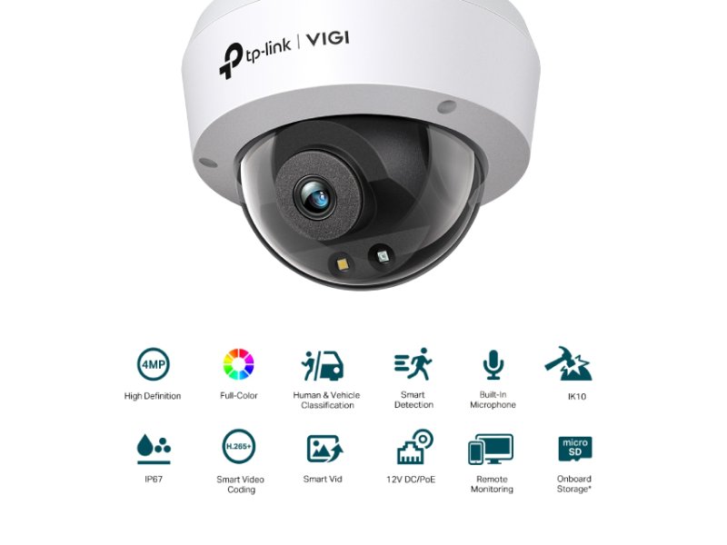 | Tip | Dom IP kamera sa fiksnim objektivom od 2.8 mm, rezolucijom 4MP i punom bojom tokom 24h |