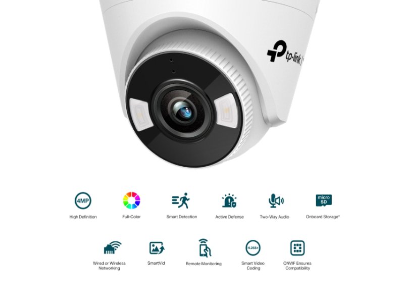 Karakteristike | Rezolucija 2560×1440 piksela (4MP) Fiksni objektiv 4 mm Noćni vid do 30 metara uz punu boju Bežična (Wi-Fi) ili žičana (Ethernet) povezanost Dvosmerni audio (ugrađeni mikrofon i zvučnik) Pametno otkrivanje pokreta, ulaska u zonu, prelaska linije i sabotaže videa Ugrađeni slot za microSD karticu do 256 GB H.265+ video kompresija za uštedu prostora ONVIF kompatibilnost za integraciju sa NVR uređajima Radna temperatura od -30°C do +60°C Napajanje 12V DC (maksimalna potrošnja 7 W) Materijal plastika, dimenzije 123×123×84 mm Otporna na spoljne uslove (IP66 sertifikat) |