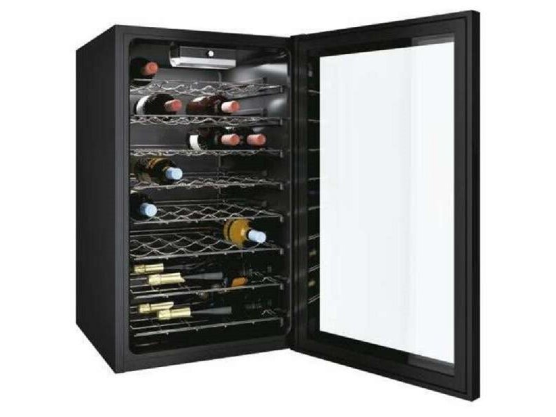 | Karakteristike | Ukupna kapacitet 41 boca Energetska klasa G Potrošnja energije 143 kWh/god Klimatska klasa N, ST Nivo buke 39 dB Akustična klasa C Broj polica 6+1 Materijal polica hromirana žica IoT App simply-Fi |
