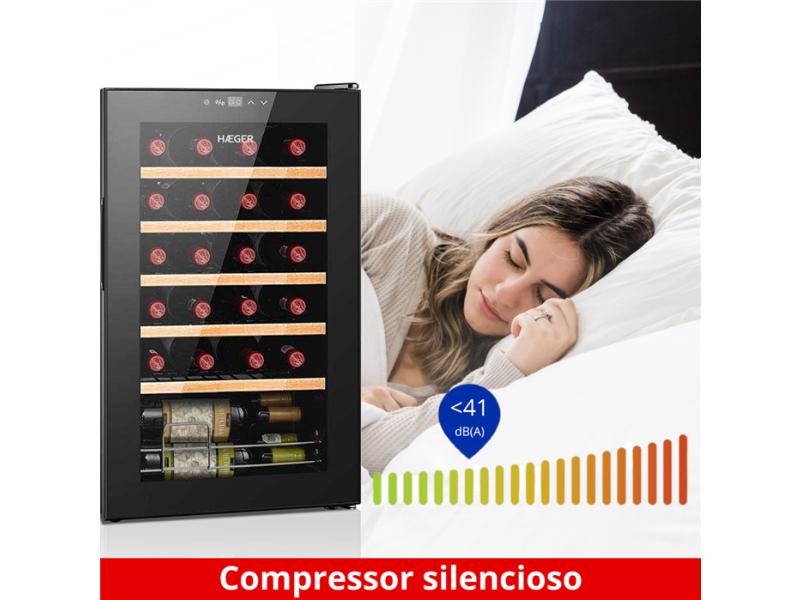| Karakteristike | Tiho funkcionisanje Visokoosetljiv kontrolni panel Kompresor rashladni sistem Vrata od dvostrukog stakla sa anti-magla sistemom LED displej 5 polica za po 4 boce i prostor u osnovi za 4 boce Temperaturni opseg: 6-20°C |