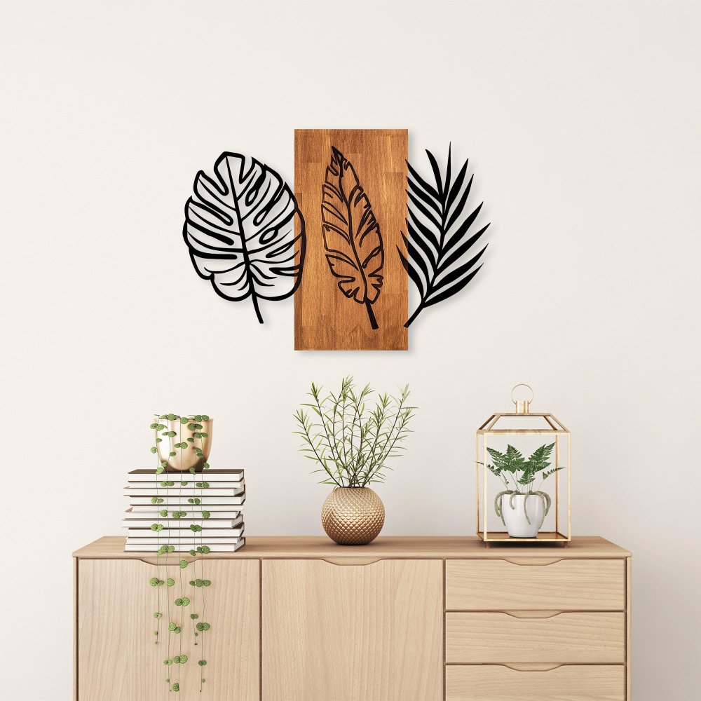 WALLXPERT Dekorativni drveni zidni dodatak Triple Leaves 384