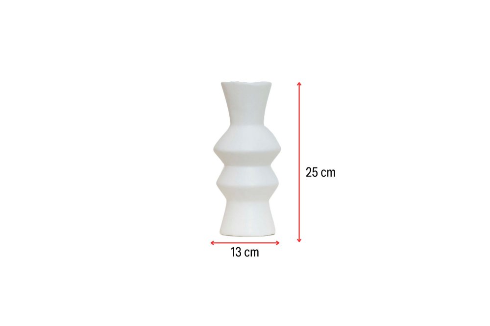 Ova vaza izrađena je od 100% keramike, pružajući izuzetnu čvrstinu i trajnost. Sa svojim jednostavnim, ali sofisticiranim dizajnom, lako se uklapa u svaki enterijer, dodajući notu elegancije vašem prostoru. Keramički materijal osigurava dugotrajnu lepotu i izdržljivost, čineći ovu vazu savršenom za različite dekorativne stilove.