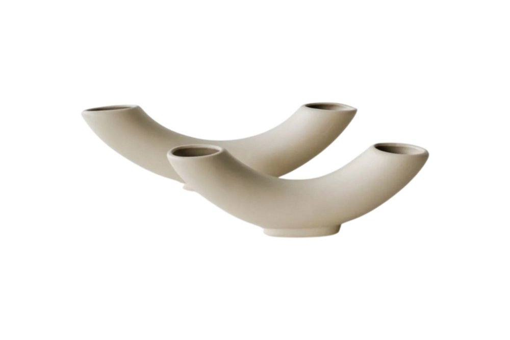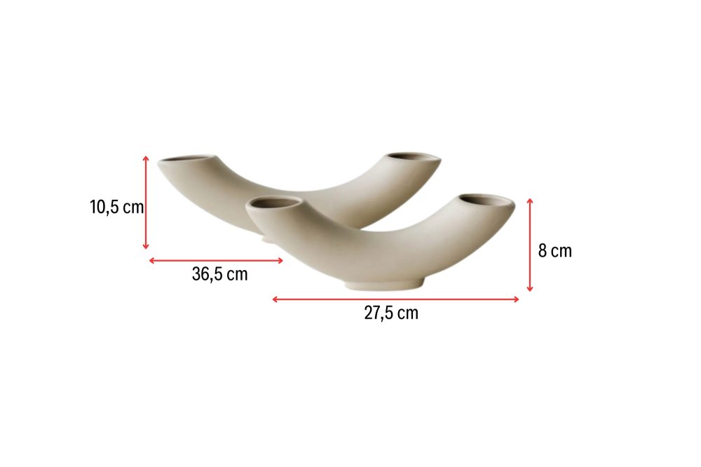 Unesite savremeni dizajnerski akcenat u svoj enterijer uz Vaza Horn Set Beige – jedinstveni set od dve keramičke vaze inspirisane apstraktnim, skulpturalnim formama. Njihov zakrivljeni, izduženi oblik podseća na stilizovane rogove, što ovaj set čini upečatljivim dekorativnim detaljem i bez cveća.