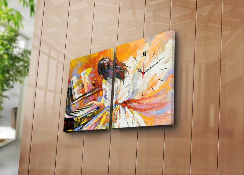WALLXPERT Dekorativni zidni sat od platna (2 komada) 2P3040CS 75