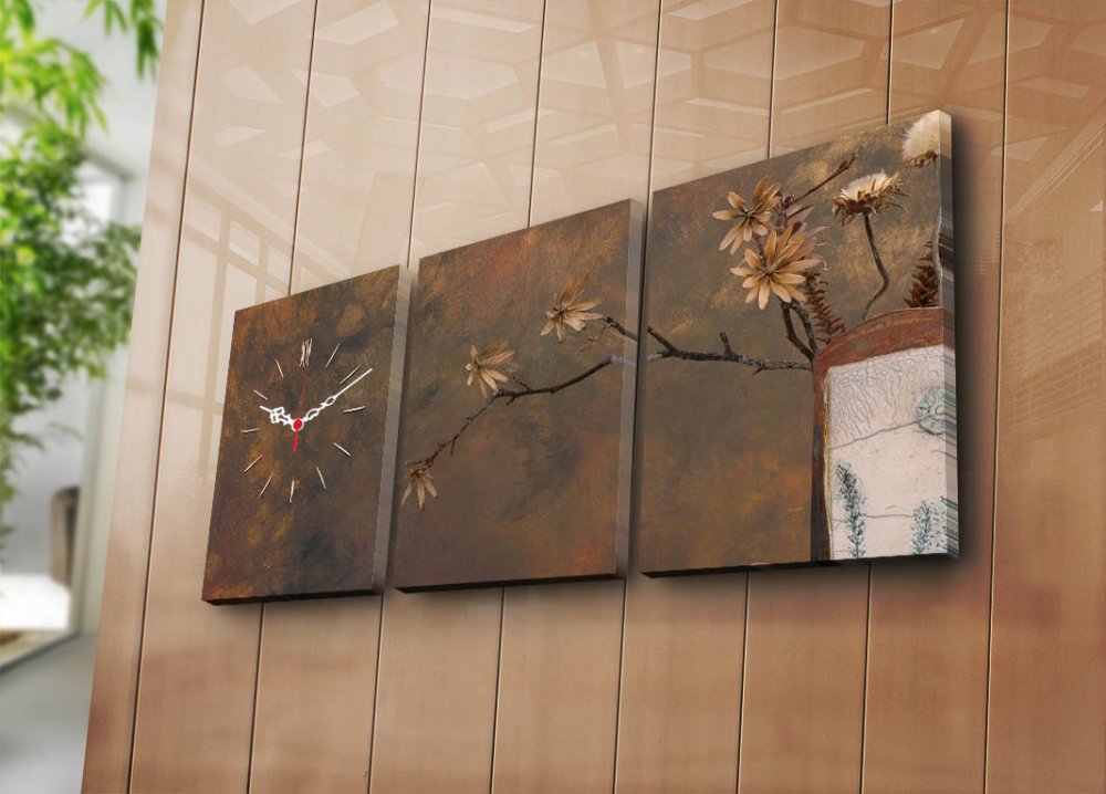 WALLXPERT Dekorativni zidni sat od platna (3 komada) 3P3040CS 56