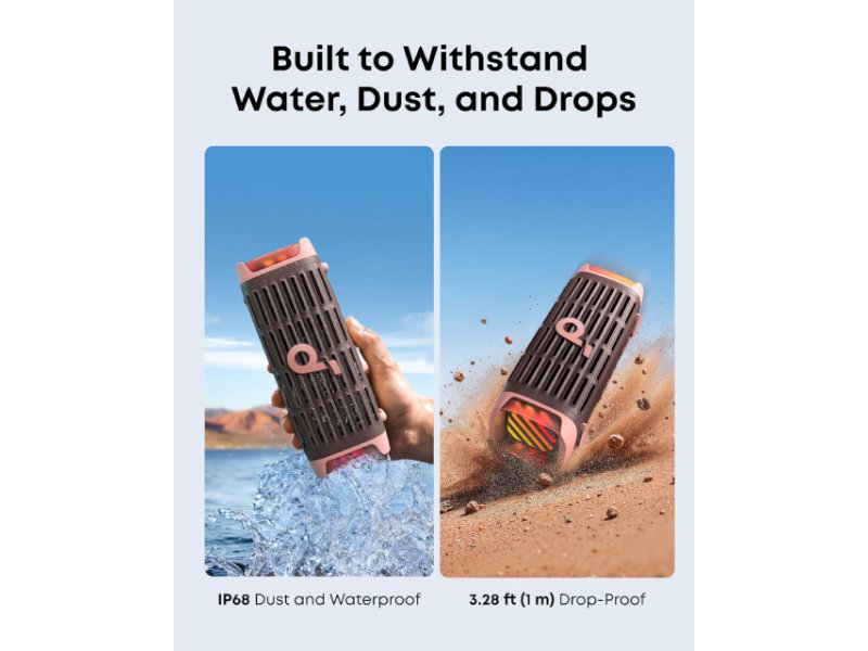 | Ostale karakteristike | Upravljanje: Tasteri na zvučniku, Soundcore aplikacija Podržane tehnologije: Alarm, BassUp™ 2.0, DSP, Pojačivač glasa, Buzz Clean funkcija Napomena: LED indikator, RGB osvetljenje, Light Show, Vodootporan (IP68), Pluta na vodi Ostalo: IP68 standard Pakovanje: Naponski kabl, Odvojiva traka za nošenje |