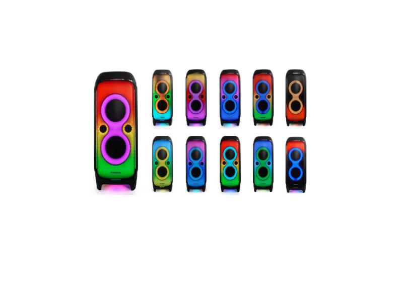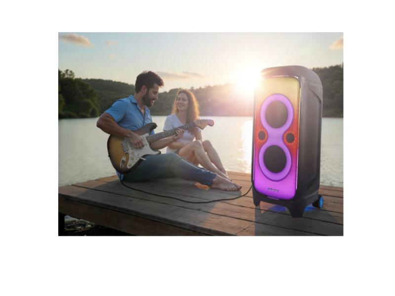| Ostale karakteristike | Baterija: ugrađena 12 V / 15 Ah Trajanje rada na bateriji: do 28 h (bez LED efekata, niska jačina) Vreme punjenja baterije: oko 8 h Težina: 35,18 kg Tip kućišta: unutrašnje MDF, spoljašnje ABS plastika Audio i tehničke karakteristike Konfiguracija zvučnika: 1 × 12″ subwoofer 2 × 8″ mid‑woofers 2 × 2,5″ tweetera Frekvencijski opseg: 40 Hz – 18 kHz (‑6 dB) Signal‑šum odnos: > 80 dB ±3 dB Povezivanje i funkcije Bluetooth 5.0 (A2DP 1.3, AVRCP 1.6), domet do ~10 m USB‑C portovi (2 komada): jedan za reprodukciju, drugi za punjenje eksternog uređaja AUX IN (3,5 mm) i AUX OUT FM radio sa PLL sintezom, memorija za 40 stanica Karaoke i gitarski ulazi: 6,3 mm jack za mikrofon, 6,3 mm jack za gitaru Funkcija True Wireless Stereo (TWS) – bežično spajanje dva zvučnika LED disco osvetljenje, kontrola preko aplikacije BP Power Audio (iOS/Android) Parametarski ekvilajzer: Pop, Rock, Jazz, Classic, Natural, Dance, Rap + funkcija Extra Bass |