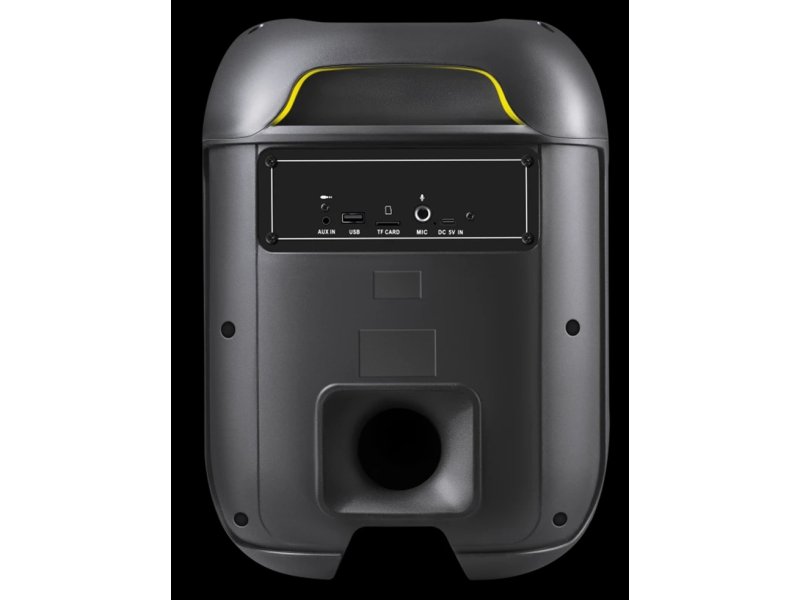 | Ostale karakteristike | Odnos signal/šum: 85 dB Frekventni opseg: 45—18000 Hz Zvučna shema: 1.1, mono Impedansa zvučnika: 4 Ohm Audio ulazi: AUX audio ulaz Domet: 10 m Vreme automatskog isključivanja nakon prekida Bluetooth veze 10 min True Wireless Stereo (TWS): Da Daljinski upravljač: Da Pozadinsko osvetljenje ima, led, podesiva Vrsta priključka za napajanje Type-C Napajanje: USB, 5 V , Li-Ion baterija Kapacitet akumulatora: 3600 mA·h Napon baterije: 7.4 V Trajanje baterije pri 50% / 75% maksimalne jačine: 4.5 / 3 sati Radio frekvencija: 87.5—108 MHz Podrška memorijskih kartica Micro-SD: Da Ulaz za mikrofon: 6,3 mm jack Mikrofon u priključcima: 1 Konektori: 6,3 mm jack, AUX audio ulaz, Micro-SD, Type-C, USB Materijal kućišta: plastika + metal Masa bez ambalaže: 4.14 kg |