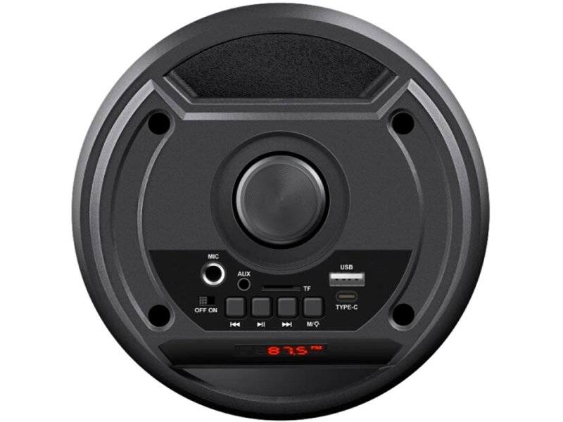| Ostale karakteristike | Vrsta: Wireless speaker Zvučna shema: 2.0, mono Odnos signal/šum: 80 dB Frekventni opseg: 20—18000 Hz Audio ulazi: AUX audio ulaz Bežični interfejs: Bluetooth 5.0 Domet stabilne Bluetooth veze: 10 m Vreme automatskog isključivanja nakon prekida Bluetooth veze: 10 minuta True Wireless Stereo (TWS): Da Vrsta priključka za napajanje: Type-C Napajanje: od USB, 5 V , Li-Ion baterija Kapacitet akumulatora: 1800 mA·h Maksimalni podržani kapacitet memorijske kartice / USB flash pogona: 128 GB Ulaz za mikrofon: 6,3 mm jack Konektori: 6,3 mm jack, AUX audio ulaz, Micro-SD, Type-C, USB Masa bez ambalaže: 1.45 kg |