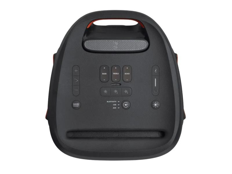| Ostale karakteristike | Frekventni odziv: 45 Hz - 20 kHz Napajanje: Punjiva baterija Vreme punjenja baterije: 3.5 h Vreme reprodukcije: do 18 h IP zaštita: IPX4 Ostalo: JBL Pro Sound, Lightshow svetlosni efekti, Karaoke funkcija, Teleskopska ručka Neto težina: 17.42 kg |