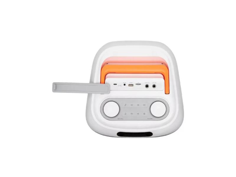 | Ostale karakteristike | Napajanje 5V DC (adapter nije u sklopu) Snaga 40 / 60 W Frekventni opseg 55-20000 Hz Osetljivost Veće ili jednako 83 dB Zvučnik Niskotonac 2x6.5" (165 mm); visokotonac 1x1" (25.4 mm) piezo Priključci USB, micro SD (maks. 32 GB), AUX 3.5 mm, MIC 6.3 mm, GUITAR ulaz 6.3 mm Bluetooth Da Daljinski upravljač Ne Radio Ne Pribor USB-C kabel za napajanje, mikrofon sa kabelom Masa 4.3 kg Dimenzije 285x570x280 mm Tip akumulatora Li-ion 7.4 V / 4.4 Ah Vreme punjenja ~6 h Vreme rada ~15 h (zavisi od jačine zvuka i ostalih podešavanja) Prenosna izvedba Da |